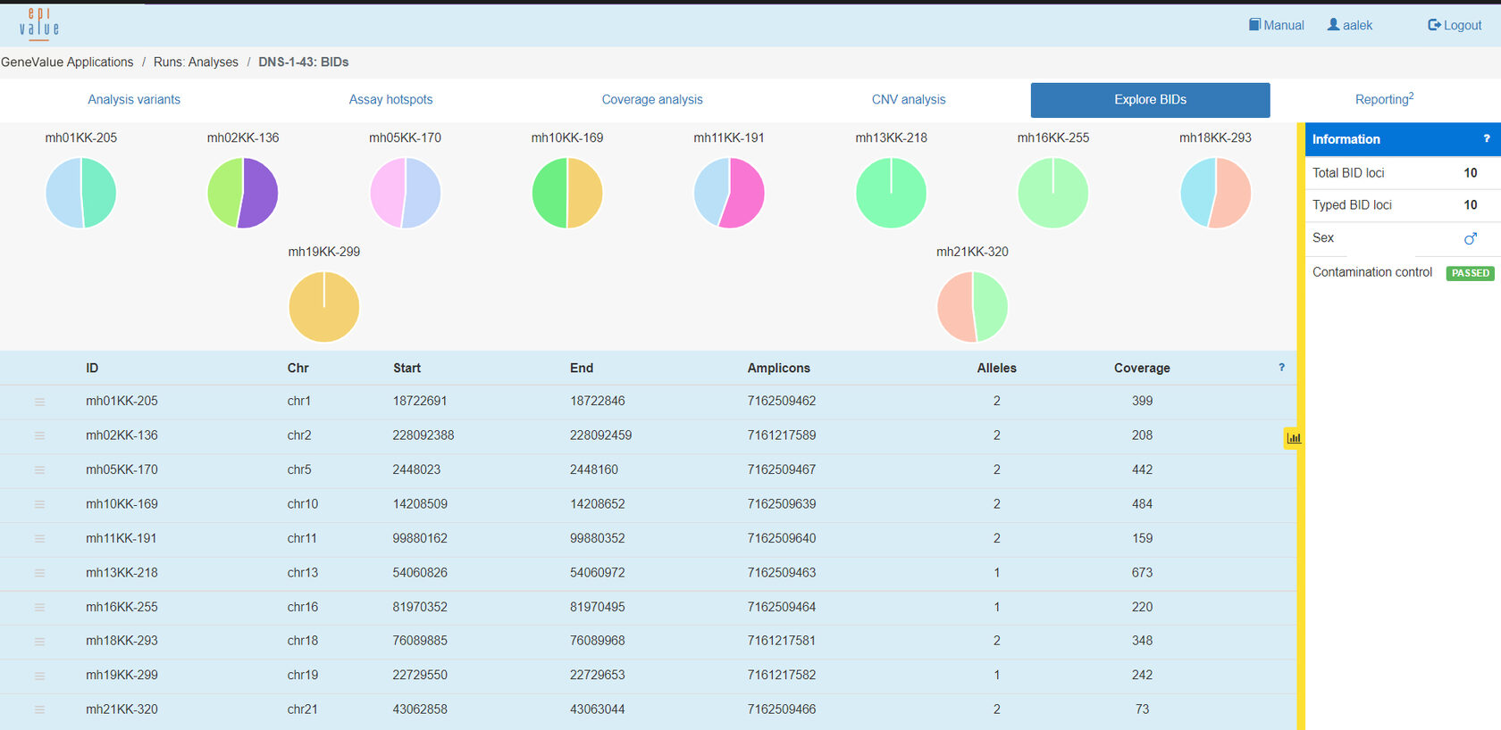 The biological identifiers (BIDs) included in the GeneValue™ Neoscreen Solution test system comprise amplicons on variable regions of the genome. These can be used to detect the presence of sample contamination, as well as for determining the sex (for human samples only).